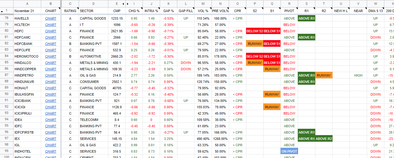 Helps You to Quickly Screen for data-points relevant for Intraday Trading.